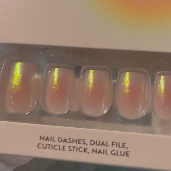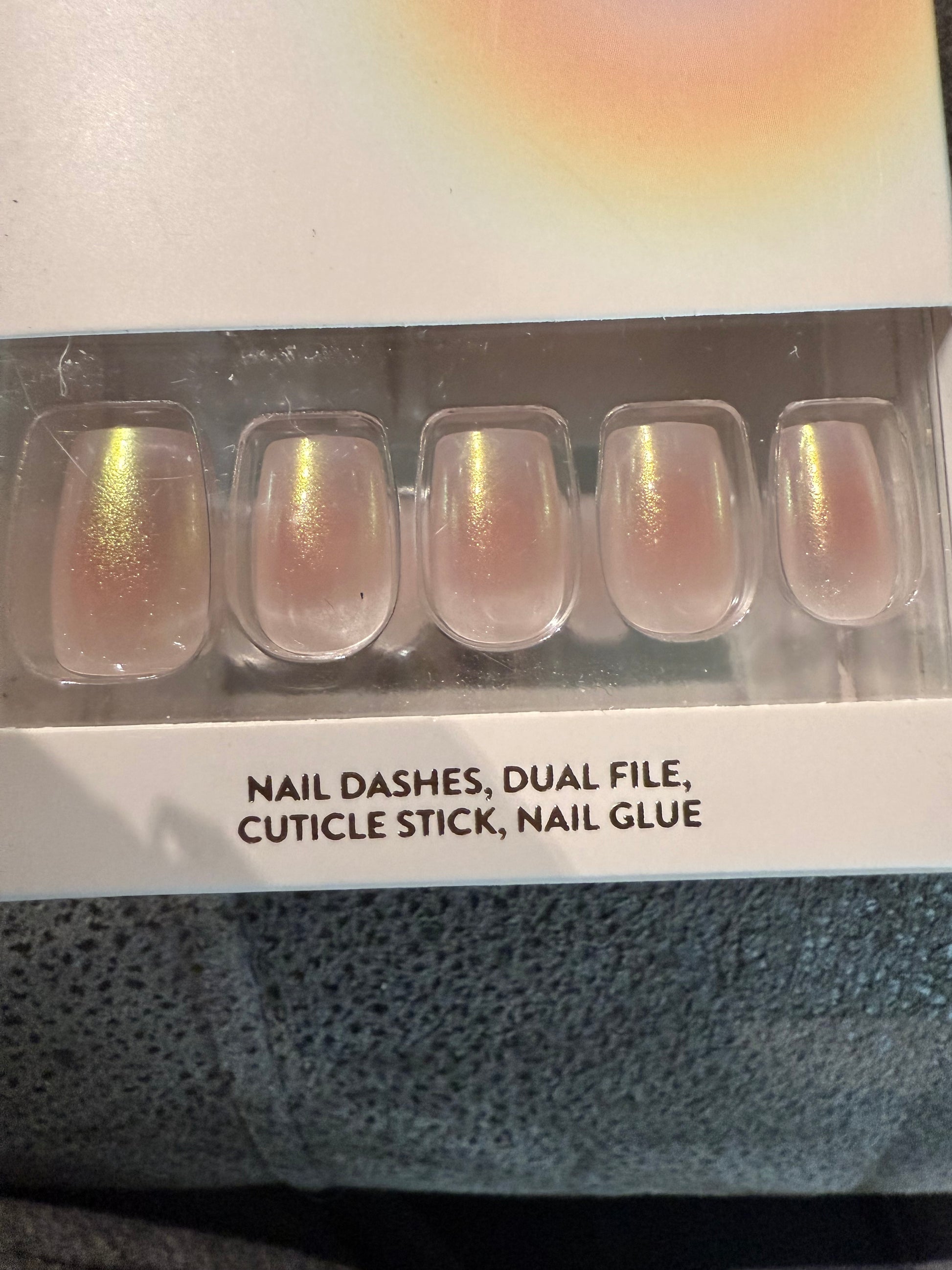 Nail Kit includes Pop-on Nail Dashes. Dual file/buffer, cuticle stick, and nail glue.
